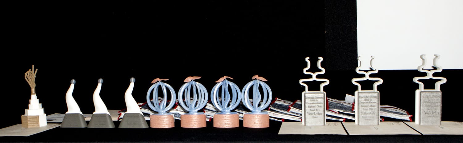 MatterThings a été chargé de fabriquer 11 trophées uniques pour la cérémonie annuelle CARE 2015 de l'Institut d'enseignement coopératif de l'Université Concordia à Montréal. Conçus par Cesar Rezer (baccalauréat en beaux-arts, majeure en design), ces prix ont nécessité un haut niveau de précision et une expertise en matériaux.